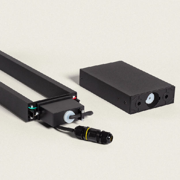 - Aluminio fundido negro y difusor de cristal templado transparente