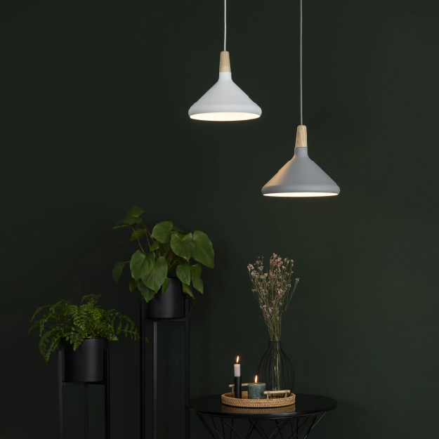 Colgante decorativo estilo nórdico en aluminio y madera. Perfecta para comedores, barras, restaurantes y oficinas.