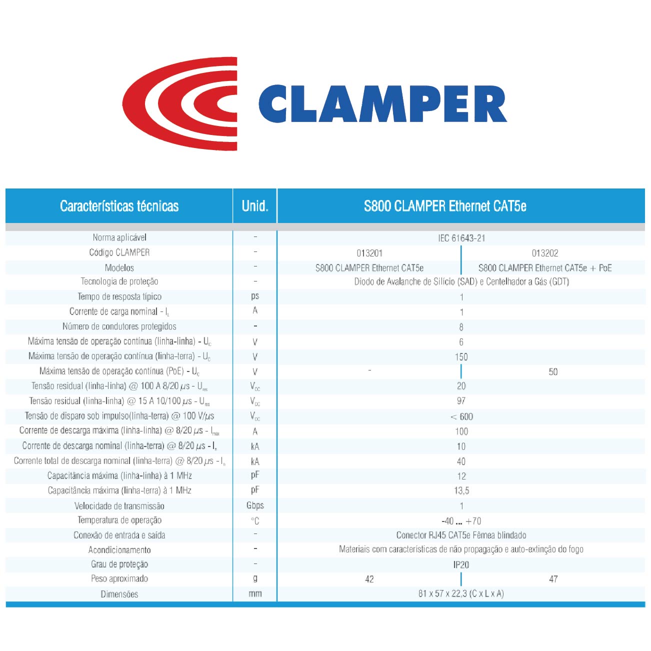 El protector Ethernet Serie 800 con conector RJ45 C5 está diseñado para brindar una defensa eficaz contra sobretensiones, descargas eléctricas, picos transitorios y eventos atmosféricos que puedan afectar redes de datos. Gracias a su tecnología de protección rápida y su baja interferencia en la transmisión, garantiza un funcionamiento estable incluso en entornos exigentes